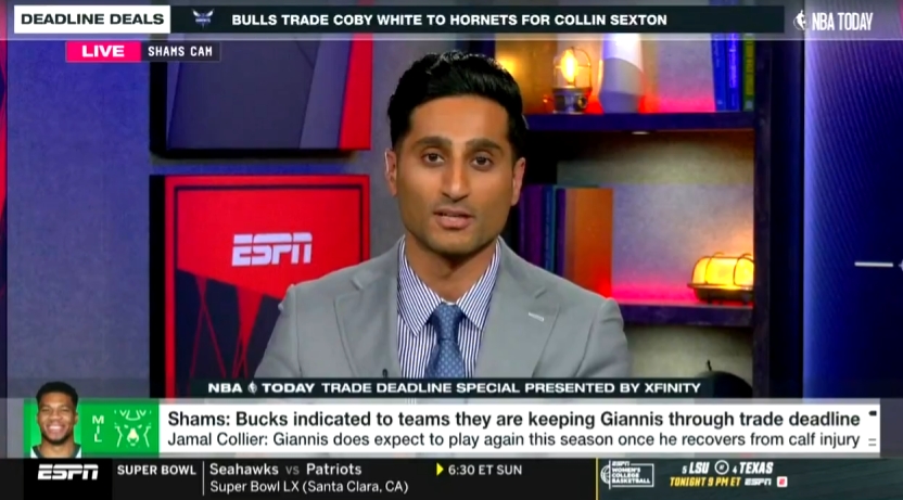 02月06日讯 ESPN名记Shams在《NBA Today》节目中报道了雄鹿关于字母哥交易的相关信息。